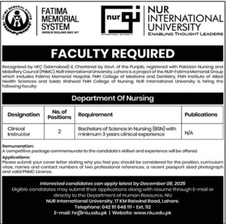 Candidates, if you are seeking Fatima Memorial System Jobs 2025 in Lahore, Apply Online yes. then it would help if you tried to complete the Fatima Memorial System Jobs because here you can easily apply for these vacancies: Clinical Instructor.